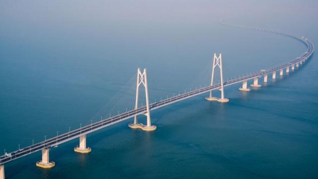 A travessia conecta as três principais cidades costeiras no sul da China - Hong Kong, Macau e Zhuhai.