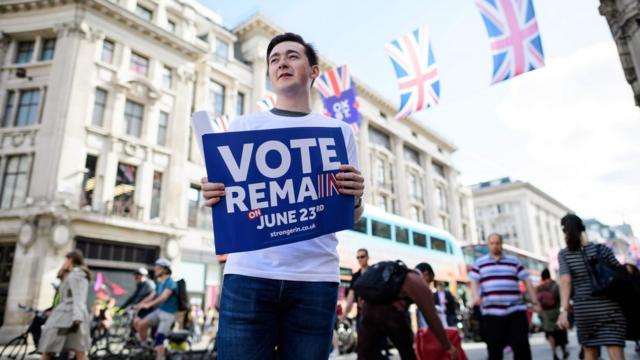Eleitor faz campanha pela permanência do Reino Unido na União Europeia no centroquem é o dono da 1xbetLondres