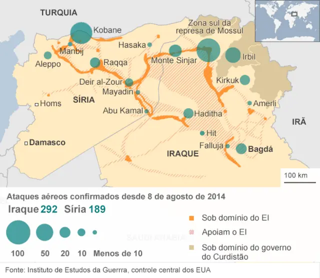 A correspondente da BBCesporte spfcBagdá, Sally Nabil, afirma que o "Estado Islâmico" tem três aviões que teriam sido capturadosesporte spfcbases militares síriasesporte spfcAleppo e Raqqa.