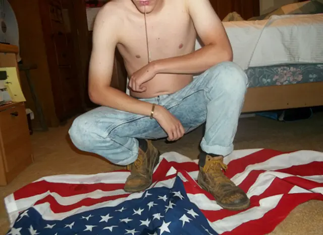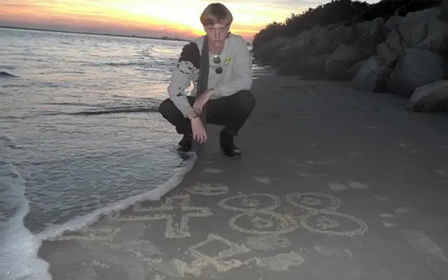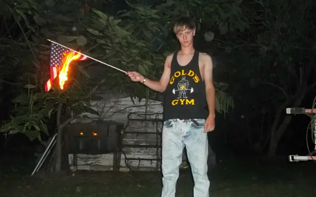 Em uma das fotos, vazadas neste sábado, o jovem aparece segurando uma bandeira dos Estados Confederados, um símbolo da guerra civil americana e considerada hoje um íconejogo jetx como funcionaódio racial no país.