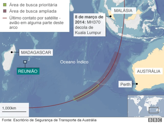 Investigadores franceses confirmaram que o flaperon - parte da asa - encontrado pertencia ao Boeing 777. Mas depois disso não houve mais grandes avanços nas buscas.