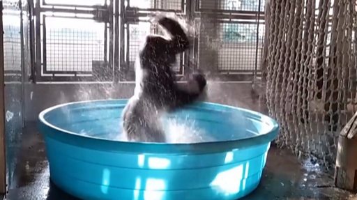 A piscina azul, dizem, é um dos itens usados pelos cuidadores para entreter e estimular os bichos.